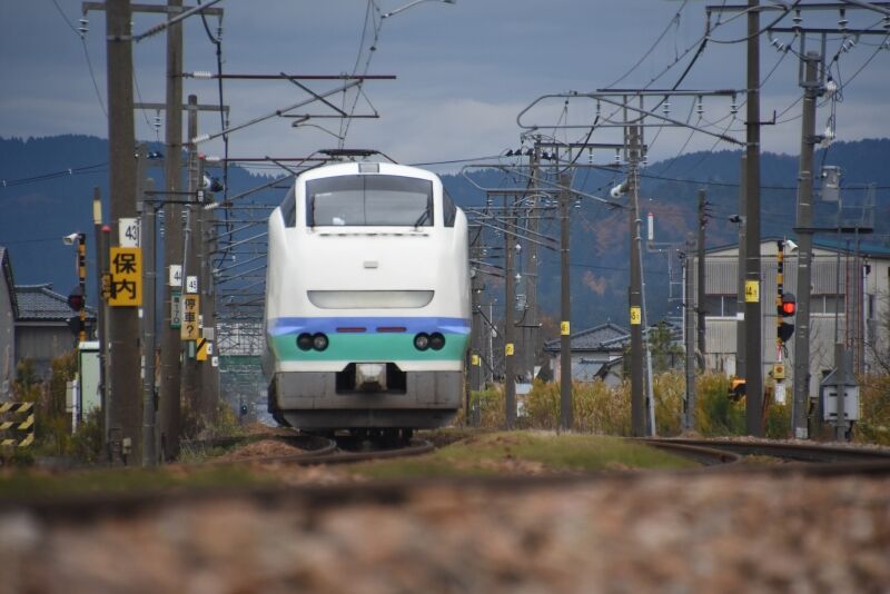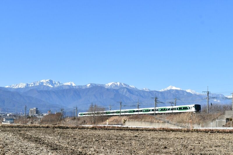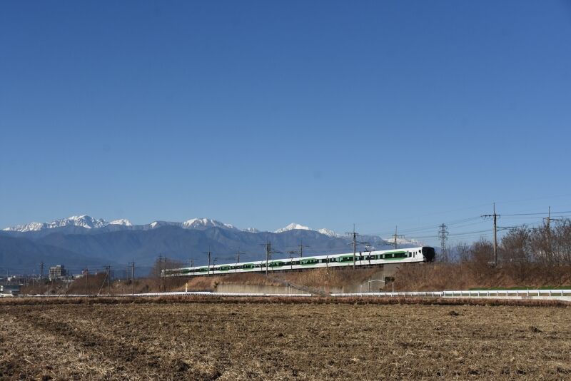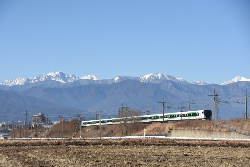 写真4枚目は、塩尻駅に停車している間に先回りしての撮影です。