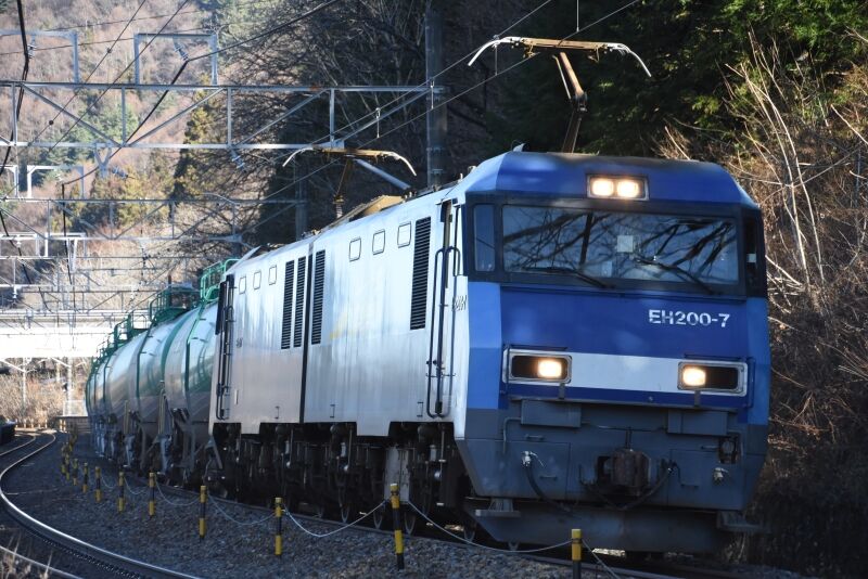 写真1枚目は、 この日より日曜日運転が再開された、東線貨物2080レ EH200-17号機が、緑タキを6両牽いてです。