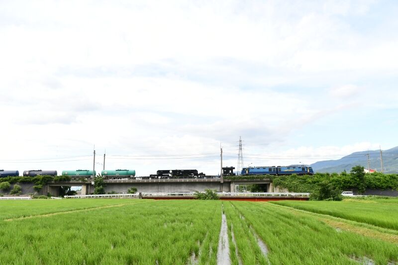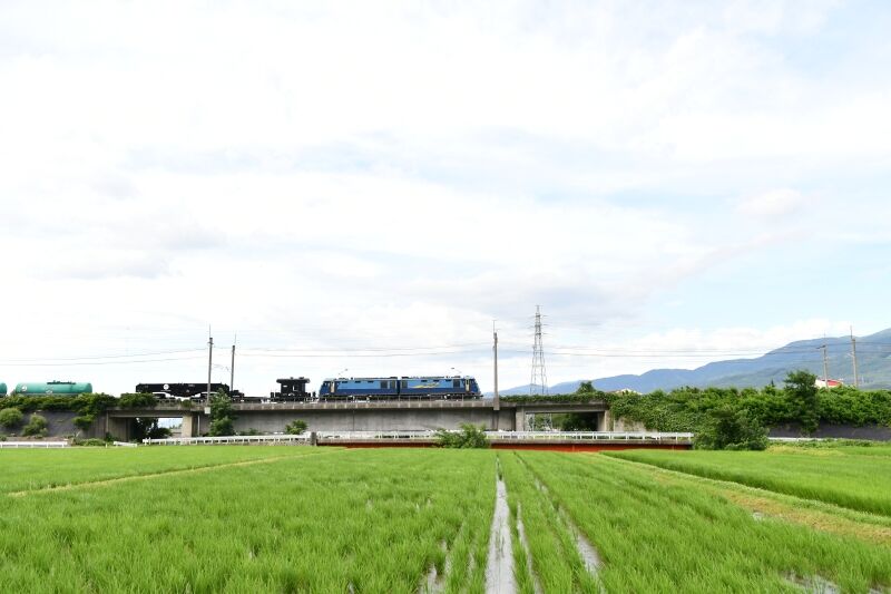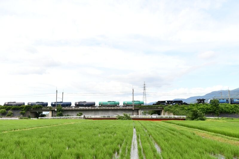 写真5枚目は、写真4枚目と同じ場所から、東線貨物5460レ EH200-9号機が、タキを10両牽いてです。
